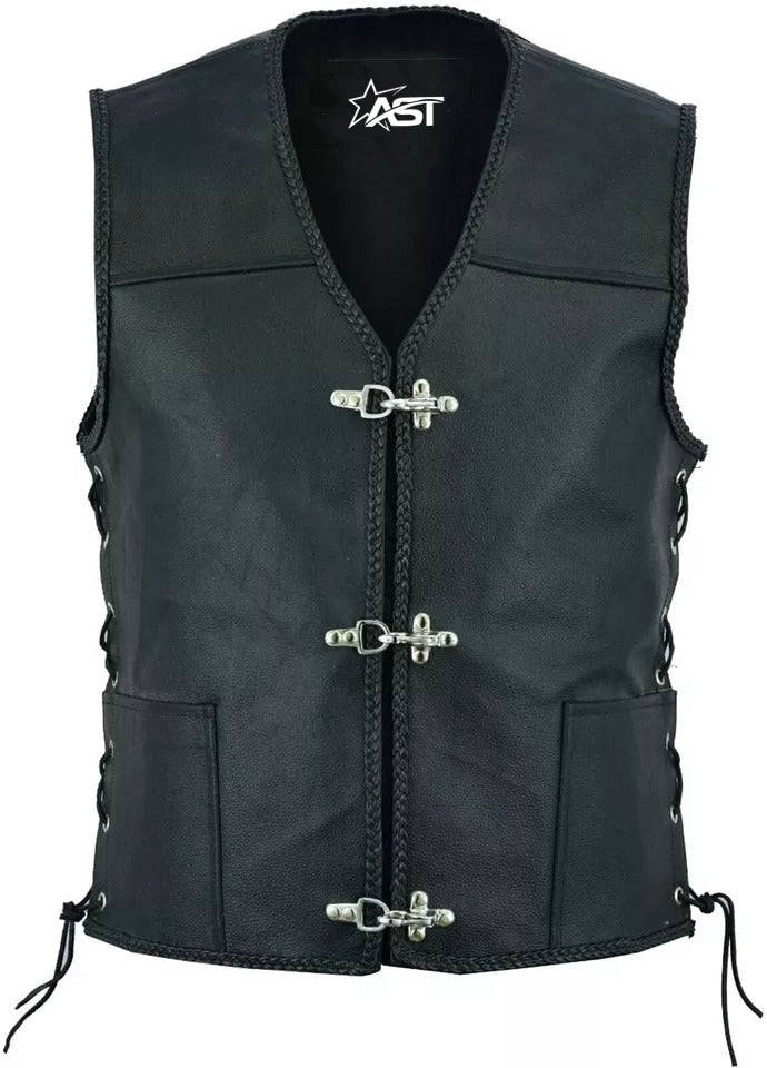 Leather Made Fish Hook Vest - Real Leather Button Side Laced